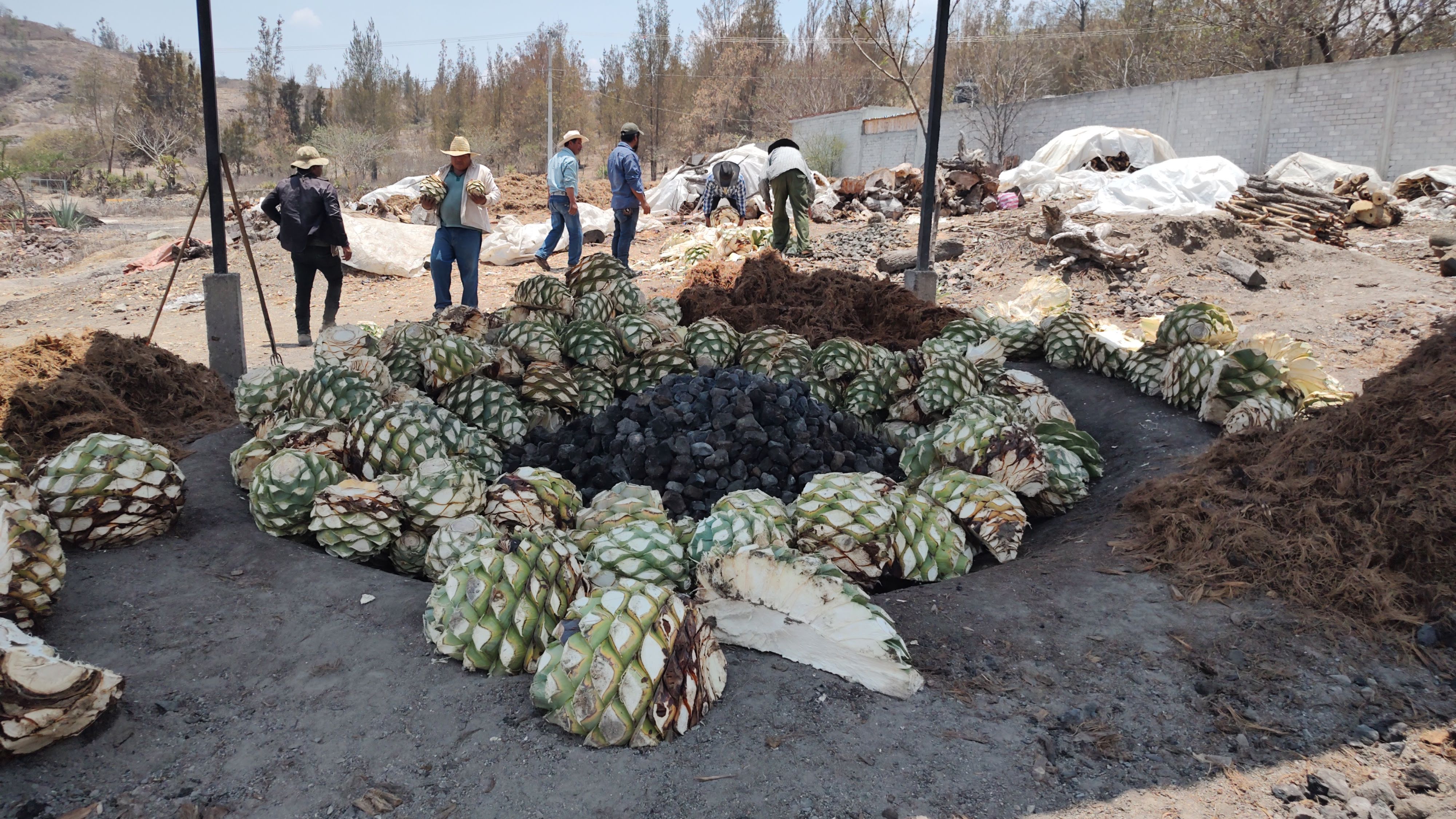 Las piñas se meten a hornos cónico situdadas en cuencas bajo la tierra) donde comienza el proceso de convertir sus almidones y carbohidratos en azúcares fermentados. Este proceso se lleva a cabo durante dos o tres días y es esencial para los sabores y aromas que tendrá el producto final.